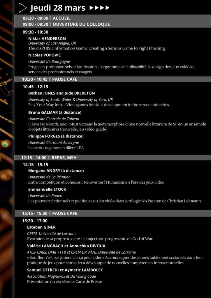 • Colloque international autour de la question : Les jeux vidéos rendent-ils stupides ? Usages des jeux vidéos au profit de l’Humanité !